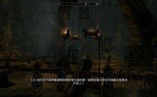 来到如图的大厅,空中悬吊着很多的囚笼,囚笼里的骨骸生前肯定备受折磨。