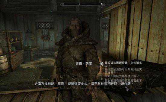将自己阅读黑暗经书发生的事情告知,他说主角和秘拉克之间会有某种联系,或许可以拯救他们的村庄,将村民从奴役中解脱出来。让主角前往瑟琳看台,学习那里的龙吼技能。