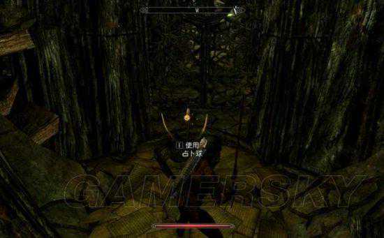 如图的位置,用占卜球打开铁门,进到建筑里。