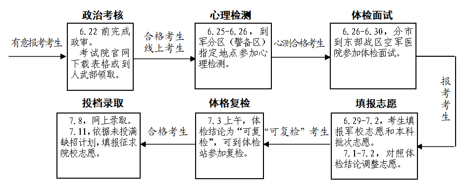 军校每年从部队和地方按比例招生,地方入校即入伍,享受军人待遇,在校期间一切学习生活费用全免,工作由学校根据专业和各大军区需要分配,去向涉及海陆空三军。