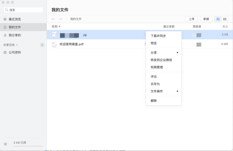 我们可以登录企业微信电脑端,打开「微盘」找到需要下载的文件,右键单击下载并同步即可下载文件。