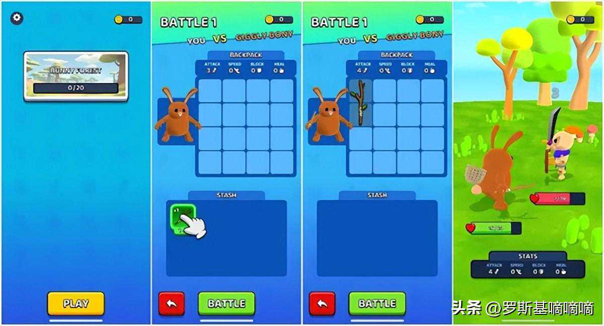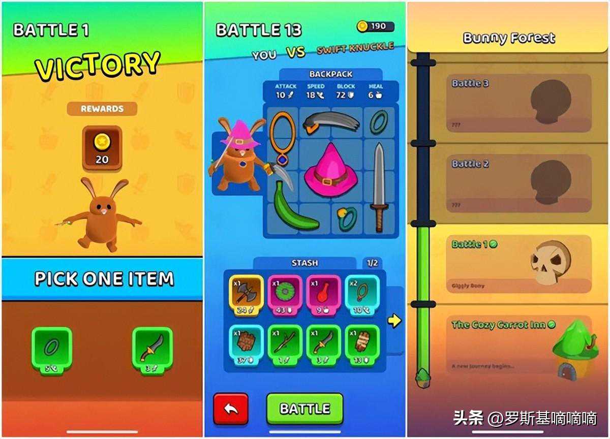 第二款产品是《BattleBunnies!》,玩法基本可以套用”按下战斗按钮-试图击败敌人-战斗失败-强化升级-再次战斗”这句话。不过,与《RucksackRumble》相比,《BattleBunnies!》整体进行了简化,画风也偏向卡通,更加偏向休闲类产品的特征。
