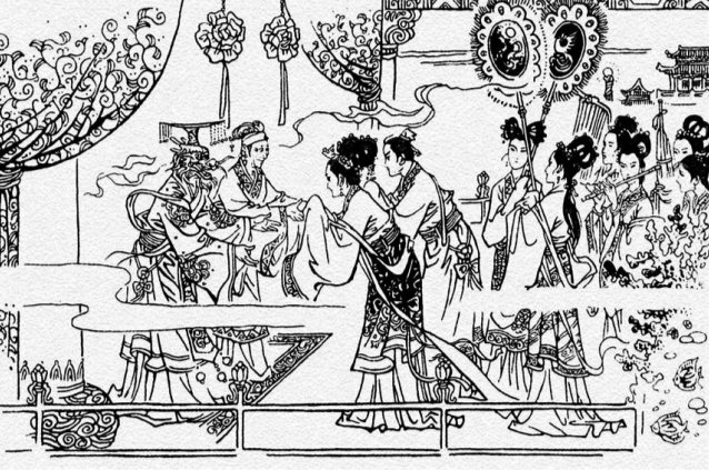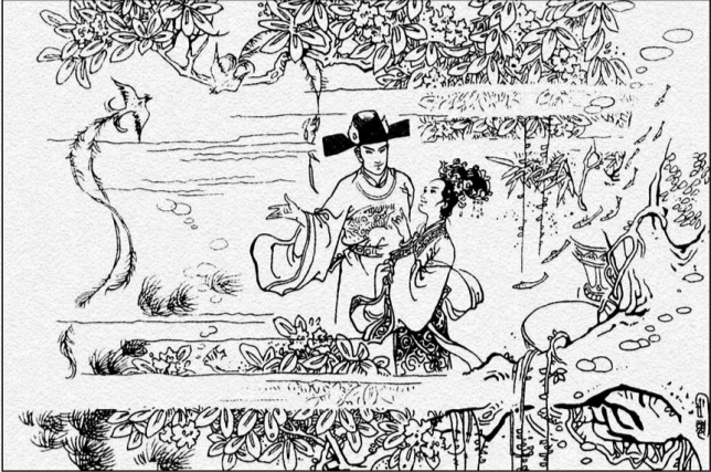 酒过三巡,龙王道:“先生才貌双全,实在敬佩!寡人有女未嫁,今知先生尚未娶妻,愿将小女下嫁,招你为驸马,请勿推辞!”马骥唯唯答应,向龙王致谢。