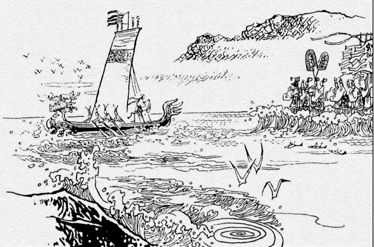 三年后的四月八日,马骥按照公主的话,一早就乘船来到南海。马骥巡视茫茫大海,远远望见海面上飘浮着两个小孩。马骥大喜,忙命船划向小孩。