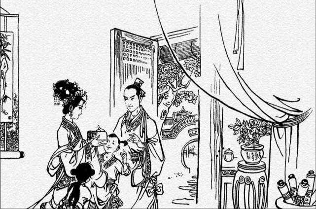 船划近小孩,马骥一看,是一男一女,生得十分可爱。孩子怀里各系红玉莲花一枝,正是自己当年赠给公主的纪念物。他马上将孩子抱到船上。